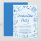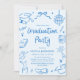 Moderne verspielte handgezeichnete blaue Abschluss Einladung
