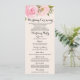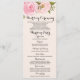 Moderne Vintage Blumenkarte | Romance Garden Wedding Station Suite | Elegantes hellrosa Hochzeitsprogramm mit handgezeichneten rosa Rosen, rosa Blume, rosafarbenen Pfannkuchen, lila Pfannkuchen, beigen Blume, dunkelgrünen Blätter und Zweigen in Aquarellmalerei. Ein ausgeklügelter handgeschriebener Schriftart-Stil mit klassischer, schicker Typografie. Trendy Hochzeitseinladung. Einige Elemente von CreateTheCut.com. ***BITTE BEACHTEN: Nur handgezeichnete Illustrationen im Stil. Blume werden gedruckt und nicht handgezeichnet. Wenn Sie den Schriftart oder die Größe des Schriftartes ändern, kann dies die Druckweise Ihres Schreibwarenwerks verändern. Es druckt, wie Sie es auf Ihrem Monitor sehen. Ich werde Ihre Karte nicht sehen, wenn Sie sie bestellen, und Zazzle wird nichts bearbeiten (Tippfehler, Ausrichtung, etc.). Vintag, modern, floral, Blume, Blumenmuster, rosa Blume, pink, elegant, schick, personalisiert, Brauch, Pony, Rose, handgemalt, blumengemalt, Vintag, Aquarell, elegant, handgezeichnet, Vintag, Retro, schick, trendig, whimsical, delicate, Garten, Natur, Pastellfarben.