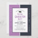 Stilvolle, moderne Abschluss-Einladung in Lila und Blau. GRATULATIONS sind vertikal auf der Seite und auf der anderen Seite die KLASSE OF 20XX geschrieben. Beide sind anpassbar. Schlichter blauer Hintergrund mit ABSCHLUSS in subtilen Fliesen. Der Platzhaltertext ist anpassbar, also fügen Sie einfach Ihren Namen und Ihre Details hinzu. Teil der ABSCHLUSS Collection von Berean Designs.