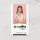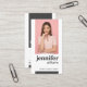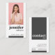 Eine moderne vertikale Visitenkarte für Modelle und Schauspielerinnen. Dieses Modell der Visitenkarte zeigt Ihr Foto und Ihren Namen auf der Vorderseite. Alle Ihre Kontaktinformationen inklusive Ihres Social Media Handles finden Sie auf der Rückseite dieses doppelseitigen Designs.