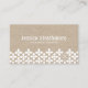 Eine elegante und zeitgenössische Visitenkarte mit weißem geometrischem Blumendesign auf einem Imitat Leinen Textur Hintergrund. Werben Sie mit diesen coolen und einzigartigen Karten für Ihr kleines oder indisches Geschäft.