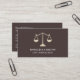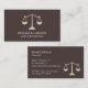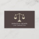 Eine moderne, zeitgenössische, elegante und minimalistische Visitenkarte, die die klassische Waage der Gerechtigkeit als Logo verwendet. Der helle, gelbe Ton kontrastiert schön mit dem dunkelbraunen Hintergrund. Dunkelbraun ist eine gute Wahl für das Gesetz, da es Stabilität, Vertrauenswürdigkeit und Zuverlässigkeit bedeutet. Perfekt für Anwälte, Anwälte, Rechtsanwälte, Anwaltskanzleien und vieles mehr. Personalisieren Sie einfach Ihre Geschäftsdetails.
