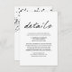Diese wunderschönen Hochzeitszäunungskarten zeichnen sich durch eine stilvolle Typografie aus, die "Details" in reinem Schwarz auf weißem Hintergrund. Auf der Rückseite sind unzählige Vögel angeordnet, die zusammenströmen. Die Vögel eines Feather-Titels verdeutlichen, wie wichtig es ist, dass das Leben des Paares in die Ehe eingebunden wird. Elegant, elegant, modern und einzigartig!