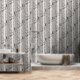 Die moderne Tapete ist mit handgezeichnet Birkenbäumen mit roten Kardinälen geschmückt, die in schwarzer Tinte auf den Zweigen stehen. Schattierungen im Kreuzschlupfstil vor einem eleganten Elfenbeinhintergrund.