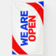 Lass Kunden wissen, dass Ihr Geschäft offen ist! Achten Sie auf unser auffälliges "We Are Open"-Banner-Zeichen. Personalisieren Sie Ihre Nachricht mit anpassbarem Text und passen Sie die Farben an die Identität Ihrer Marke an.