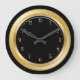 Moderne Wände-Dekoruhren mit schwarz-goldfarbenem Muster auf der Uhr in diesem dekorativen Wanddekor-Design für Ihre Küche, Badezimmer, oder jedes Zimmer in Ihrem Haus, das Sie gewollt, um etwas Farbe, Charakter oder Stil hinzuzufügen.