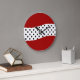 Moderne Wanduhr mit schöner Farbkombination aus Rot, Schwarz und Weiß und hübschen Polka-Punkten auf der Uhr. Entworfen für jede Küche, Schlafzimmer, Garten oder Schlafzimmer. Für Damen oder Mädchen kreiert und lassen Sie uns Ihre Wände stilvoll dekorieren.