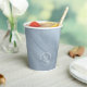 Ein handgeschriebener, signierter Schriftart kombiniert mit einem Glitzer-Marmorhintergrund bietet in den meisten Teilen dieses Set die richtige Touch für eine elegante Hochzeit. Der hier abgebildete Papierbecher zeichnet sich durch ein minimalistisches Design Ihrer Namen, Initialen und Hochzeitsdaten auf einem staubblauen, wasserfarbenen Hintergrund aus. Suchen Sie ID816, um weitere Teile und Farboptionen für dieses Set zu sehen.
