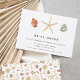 Ein Wasserfarbenthema schafft einen prächtigen Hintergrund für diese moderne, bewegende Ankündigung. Schöne handbemalte Muscheln gepaart mit schlanken, minimalen Schriftart. Passen Sie Ihre Details an und ließ dieses schöne Design machen alle Gespräche.