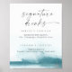 Dieses moderne, aquamarine, wasserfarbene Getränkezeichen eignet sich hervorragend für eine zeitgenössische Hochzeit. Die minimalistische, klassische und elegante Kollektion bietet einfache Wasserfarbenpinselstriche in hübschen Schmucktönen.