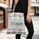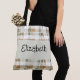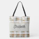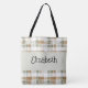 Moderne karierte Tasche mit individuellem Namen. Die Herbstfarben Salbei und Weiß begleiten Sie auf Ihren Ausflügen zum Herbstmarkt und darüber hinaus.