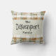 Modernes, kariertes Kissen mit individualisierbarem Familiennamen ergänzt Ihre Bauerndekoration. Die grün-braune Herbstfarben macht jede Ecke gemütlich und gemütlich.