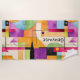 Schönes abstraktes Design mit geometrischen Aquarellformen von Kreisen und Rechtecken in violett, orange, blau und grün verleiht Ihrem Strand oder Ihrer Poolzeit eine schöne Touch der Eleganz. Persönlich mit einem Namen in einer lässigen handgeschriebenen Stil Typografie macht ein großes Badetuch!