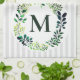 Ein elegantes Aquarellbild eines grünen Blattkranzes. Das stilvolle Monogramm macht es zu einem personalisierten Geschenk für Geburtstag, Hochzeit oder Brautparty.