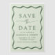Ankündigen Sie Ihre Hochzeit mit unserem Modern Wavy Frame Vellum speichern Sie die Datumskarten! Dieses einzigartige Design zeichnet sich durch Namen und Hochzeitsdetails aus, die durch ein raffiniertes, grün gewelltes Set mit schimmerndem, hellgrünem Vellum-Hintergrund gerahmt sind. Die harmonische Mischung aus retro-inspirierten Kurven und moderner Eleganz schafft eine faszinierende Ästhetik, die perfekt für Paare ist, die eine frische und stilvolle Ankündigung suchen. Personalisieren Sie diese Karten so, dass sie Ihre Liebe widerspiegeln, während Sie den Ton für Ihren besonderen Tag festlegen. Sowohl ein atemberaubender Sake als auch ein unvergesslicher erster Eindruck, diese speichern die Daten sind eine angenehme Art, Ihre Begeisterung mit den Lieben zu teilen.