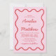 Moderne Wavy Pink und Red Retro Squiggle Wedding Einladung