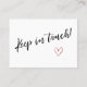 Behalt deinen Freunden und Verwandten mit diesen schlichten, eleganten Einschließkarten immer auf dem neuesten Stand mit deiner neuen Adresse. Sie können sie in Ihre Mailings einfügen oder persönlich weitergeben, wenn Sie auf Personen stoßen, die Sie benachrichtigen müssen. Wenn Sie eine besondere Methode gewollt haben, um Ihren Stamm zu lassen, Sie zu finden, ist diese Karte vielseitig genug für jeden. Es enthält hübsche Typografie-Grafiken, die auf der Vorderseite "We've Moved" und auf der Rückseite "Behalten in Touch!" mit einem modernen, lässigen, handgeschriebenen Skript-Schriftart lesen. Ich habe auf der Vorderseite ein kleines Hausbild und auf der Rückseite eine Kontur mit rotem Wasserfarbenherz platziert, die eine besondere Touch verleiht. Verwenden Sie die Vorlagenfelder, um alle Ihre eigenen Daten hinzuzufügen, um dieses Design für Ihren eigenen Gebrauch zu personalisieren. Wenn Sie den hübschen, einfachen serifenlosen Schriftart ändern möchten, den ich für den bearbeitbaren Text verwendet habe, oder möchten Sie ein paar Zeilen anderswo verschieben, klicken Sie auf den Link, um die Karte weiter anzupassen. Der schwarze Typ wurde auf einem bearbeitbaren weißen Hintergrund platziert. Sie können den Hintergrund in eine beliebige Farbe ändern. // 90 // Designed by Melody Watson for Paper Muserie.