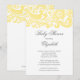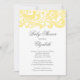 Beginnen Sie Ihre Babydusche, eine geschlechtsneutrale Babydusche oder eine Babydusche direkt mit unserem angesagten und eleganten, blassgelben & weißen, blumengeschmückten Damast Schwenk Babydusche auf einem knusprigen, weißen Hintergrund. Passen Sie einfach unsere elegante Einladung mit Ihren Babydusche-Informationen an und Sie sind alle Set zu gehen. Erhältlich in anderen stilvollen Babyfarbenkombinationen in unserem Shop unter www.celebrateitinvites.com. Karo unsere passenden Dankeschön-Notizen, Aufkleber und Brautknöpfe in unserem Shop