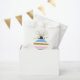 Weihnachtsbaumzwiebel im modernen Stil mit unregelmäßigen Streifen in hellblau, simulierter Goldmedaille, Rosa und Marineblau mit weißen Polka-Punkten. Mit einem simulierten Imitat Glitzer Bogen und blau und rosa heilig. Set auf massiv weiß. Personalisieren Sie Ihre Nachricht mit Ihrem Namen oder Ihrer Nachricht in einem dunkelblauen Serif-Handwriting-Schriftart.