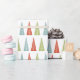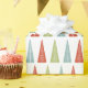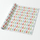 Wrap spendet mit dieser Geschenkpackung im Stil. Dieses Verpackungspapier zeichnet sich durch ein rundes Muster auf eleganten, modernen Illustrationen von Weihnachtsbäumen in hellgrün, hellblau und rot mit weißen Akzenten vor weißem Hintergrund aus.