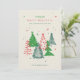 Diese moderne Karte zeigt eine einfache Abbildung von mehreren Weihnachtsbaumen in typischen saisonalen Farben. Der Hintergrund der Textur verleiht dem Ganzen ein weiches rustikales Ambiente. Diese Nicht-Foto-Karte ist ideal, um Weihnachts-Grüße oder Happy Holidays Wünsche an Familie und Freunde zu senden. Es ist eine großartige Visitenkarte, die Sie an Mitarbeiter und Kunden schicken können.