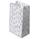 Moderne, personalisierte Weihnachtsgeschenktasche mit niedlichen abstrakten Weihnachtsbäumen und Waldbäumen und Winterschneemuster in Lavendeltönen, blau und weiß. Das Beispiel wird im KLEINEN Format angezeigt - größere Größen sind auf der Bestellseite verfügbar. HILFE: Für Hilfe bei Designänderungen oder Personalisierungen, Farbänderungen, Größenanpassungen oder der Übertragung des Designs auf ein anderes Produkt wenden Sie sich bitte an den Designer, BEVOR er Bestellung über die Registerkarte Zazzle Chat MESSAGE unten oder per E-Mail an makeitaboutyoustore@gmail.com.