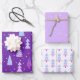 Eine Kollektion von drei aufeinander abgestimmten Verpackungspapierblättern mit einem Muster moderner abstrakter Weihnachtsbäume und Waldbäume im Winterschnee in verschiedenen Farben lila, rosa, blau und weiß. HILFE: Für Hilfe bei der Modifikation oder Personalisierung des Designs, bei der Übertragung des Designs auf ein anderes Produkt oder wenn Sie die Dinge koordinieren möchten, wenden Sie sich bitte an den Designer, BEVOR Sie über Zazzle Chat bestellen oder per E-Mail an makeitaboutyoustore@gmail.com.