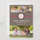 Ein moderner Look für eine Weihnachtskarte des Fotos mit einem dunkelbraunen Hintergrund, hellgrünem Text und einem Wirblen Weihnachtsbaum. Es gibt drei Fotorahmen oben und ein großes Foto unten. Der gesamte Text ist anpassbar.