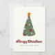 Modernes Retro Änderung der Adresse Wohnung Karte für den Urlaub! Eine niedliche WeihnachtsbaumIllustration und Vintage Typografie mit dem Text ' Frohe Weihnachten von unserer neuen Zuhause ' in einem roten und grünen Design. Auf der Rückseite ist Platz für eine individuelle Nachricht, die Grüße der Saison und ein festlicher Stern.