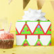 Geschenkpackung mit meinen Weihnachtsbäumen Muster in grün und rot mit farbenfrohen runden Dekorationen.