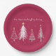 Fügen Sie Ihrer Weihnachtszeit eine Touch Eleganz hinzu mit diesen modernen, festlichen Weihnachtsbaumstars - Rot, Weiß, Gold, Papier-Teller, die mit weißen Weihnachtsbäumen auf hellrotem Hintergrund dekoriert sind, und Text: die Sterne strahlen hell aus. Achten Sie auf die passenden Weihnachtsbaumstars - Rot, Weiß, Gold, Holiday Set Accessoires.
