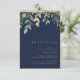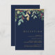 Dieses moderne Weihnachtsgrün | Marine Empfang Umschließkarte ist perfekt für Ihre einfache boho Winterhochzeit. Entwickelt mit geometrischen Imitaten Goldfolie und minimalistisch botanischen Aquarell mit Touchs von grünen Eukalyptus und roten Winterbeeren. Alles auf klassischem Marinehang. Diese Elemente verleihen ihm ein modernes und dennoch elegantes Ambiente, um das Aussehen, das Sie suchen, zu vervollständigen! Sie können mit Ihren eigenen Fotos personalisieren oder es behalten, wie es ist. Schauen Sie sich die Erholung der Sammlung an, um Ihr Hochzeitstil zu vervollständigen!