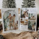 Diese Weihnachtskarte zeigt ein gebogenes Foto auf der Vorderseite und 4 Fotos auf der Rückseite. Für dieses Design ist "Frohe Feiertage" nicht editierbar, aber aller andere Text kann angepasst werden.