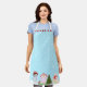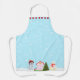 Moderne Weihnachtsschmuck auf hellblauer Schürze. Text kann personalisiert sein.