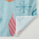 Ein modernes, inspiriertes Weihnachtsdesign mit bunten Weihnachtsbaumschmuck und Sputnik-Sternexplosionen vor einem hellblauen Hintergrund.