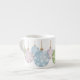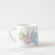 Dieser Espresso-Becher bietet drei nicht-traditionelle Farbe Weihnachtsschmuck in Pastellgrün, Rosa und Blau mit weißen Sternen. Die Ornamente in verschiedenen Größen umkreisen die Tasse über einen weißen Hintergrund.