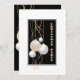 Freuen Sie sich auf die moderne Schwarz-Weiß-Party Einladung mit eleganten Bändern und Bläsern in Gold und Weiß. Diese Einladung eignet sich für Firmenfeiern und Familienfeiern.