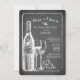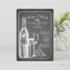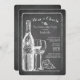 Moderne Kreideskizzewein u. -käse Junggeselinnen-Abschiedseinladung kennzeichnet eine Weinflasche, Weingläser, Trauben und ein Stück des Käse-Sets auf einem modernen Tafelhintergrund. Drehen Sie unsere zeitgenössische Tafel Bachelorette Feier-Party Einladung, um eine zusammenpassende Rückseite für eine spezielle Touch vorbei anzusehen.