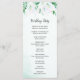Diese Hochzeitsfeiern sind mit weißen, lila Aquarellfarben und grünem Blattwerk gestaltet. Die Vorderseite der Karte hat die Zeremonie, und auf der Rückseite der Karte wird das Brautparty angezeigt. Diese Hochzeitsprogramme sind Teil einer Sammlung, die eine Reihe von passenden Hochzeitsauflagen wie Einladungen, Antwortkarten, Umschließungskarten, Adressetiketten, Aufkleber und vieles mehr umfasst. Bitte besuchen Sie unseren Shop oder schauen Sie sich unsere Kollektionsseiten an, um das komplette Sortiment zu sehen.