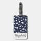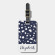 Trendweiße dalmatinische Flecken und marineblaue Gepäckmarke mit individuelle Name.