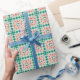 Dieses stilvolle Verpackungspapier zeichnet sich durch ein modernes geometrisches Quilt Blockmuster aus, das in einer festlichen Weihnachtsfarbenpalette in Rot und Grün gehalten ist.