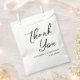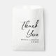 Diese elegante Hochzeit danke Ihnen Gunst-Tasche mit schwarz handgeschriebenen Kalligraphie-Skript mit den Worten "Danke" und Ihre Namen und Hochzeitsdatum, um auf einem einfachen weißen Hintergrund personalisieren. Entworfen von Susan Coffey.