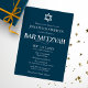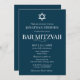 Moderne weiße Typografie auf Blue Bar Mitzvah Einladung