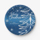 Moderne weiße Weihnachtsbaume & Schneeflocken Pappteller