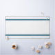 Dieses elegante, moderne Design verfügt über zwei schlanke Ober- und Tiefsee-blaue Streifen am unteren Rand mit einem knalligen weißen Hintergrund.