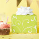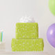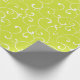 Ein skurriles, modernes Design mit weißem Curl-Muster vor einem limatgrünen Hintergrund.