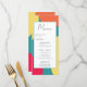 Diese moderne Hochzeitskarte bietet Retro-Kalligraphie auf einem groovativen abstrakten Bogenhintergrund! Diese Karte ist ideal für Paare, die gewollt haben, ihre Dekoration im Rahmen der Hochzeitsfeier mit einer Touch Spaß und Persönlichkeit zu ergänzen, während sie ihren Gästen auch gelassen haben, welche köstlichen Speisen und Getränke sie genießen werden. Unser künstlerisches Design ist vollständig anpassbar, sodass Sie Ihre eigene personalisierte Touch hinzufügen können, um Ihre Menükarten wirklich einzigartig zu machen. Wählen Sie aus verschiedenen Farben, um Ihr Hochzeitstil oder Ihren persönlichen Stil zu gestalten. Die Retro-Kalligraphie fügt dem spielerischen Design eine Touch von Eleganz und Eleganz hinzu und ist somit ideal für alle, die Spaß und Glamour will. Die abstrakten Arkaden verleihen Ihrem Hochzeitsempfang einen Pop von Farbe und Persönlichkeit. Unser hochwertiger Druckprozess sorgt dafür, dass Ihre Menükarten phantastisch und beruflich aussehen, sodass Sie sich darauf konzentrieren können, Ihren besonderen Tag mit Ihren Lieben zu genießen. Mit unseren individuell gestaltbaren Optionen und dem lebendigen Design werden Ihre Gäste sich freuen, über die köstlichen Speisen und Getränke, die sie bei Ihrer Hochzeit genießen werden, zu lesen. Insgesamt ist unsere moderne Hochzeitskarte mit Retro-Kalligraphie auf einem farbenfrohen, groovy abstrakten Bogenhintergrund ein Muss für alle Paare, die will, ihre Dekoration im Rahmen der Hochzeitsfeier mit Persönlichkeit und Spaß zu verbinden, während sie ihren Gästen praktische Informationen zur Verfügung stellen.