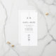 Mit dieser bearbeitbaren Hochzeitsvorlage können Sie Ihre Daten einfach personalisieren. Das minimale elegante Typografie-Design in Schwarz-Weiß-Farbe.