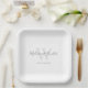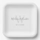 Dekorieren Sie Ihren Hochzeitstisch mit diesen modernen Tellern aus weißem, grauem Schriftzeichen. Alle Zimmer sind modern und mit einem individuell einstellbaren weißen Hintergrund gestaltet. Große graue Initial ist in der Mitte und Braut und Bräutigam Vornamen sind in dunkelgrauem, trendigem handgeschriebenem Skript. Das festgestellte Jahresdatum liegt in der unteren Mitte. KLICKEN SIE AUF VORLAGENOPTION PERSONALISIEREN, UND FOLGEN SIE DEN PROMPTEN.