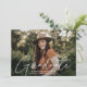 Wir laden Sie ein, mit unseren stilvollen Foto-Abitur-Einladungen den Abitur zu feiern. Die Einladungen zur Graduierung beinhalten das Foto des Absolventen mit "Graduate" in einem weißen, modernen Kalligrafiebeschild-Overlay. Personalisieren Sie die Front des modernen Abschlusses einladen, indem Sie den Namen, den Schulnamen und Abschluss Jahr. Die Einladung kehrt um, um Ihre Graduiertenparty Details und ein trendiges, schwarz-weiß gepunktetes geometrisches Muster anzuzeigen.